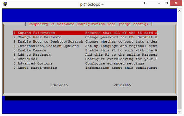 Después de una breve pantalla de terminal negro, estamos una vez más volver a la configuración del raspi.