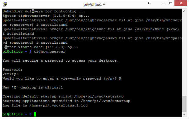Como no se configurar servidor VNC se inicie automáticamente después de cada reinicio del sistema, tenemos que iniciar sesión en nuestra frambuesa usando masilla y arrancar el servidor VNC escribiendo: