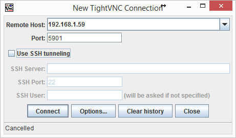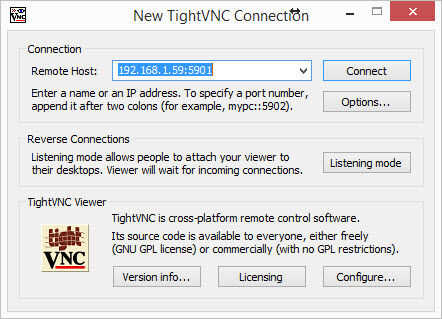 Introducir la IP seguida de: 5901 sin cualesquiera espacios y conectar hit - contraseña se elige durante la instalación de VNC y pulse Aceptar - ver imagen