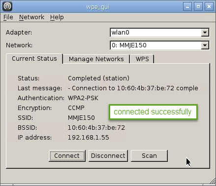 Ahora estás en el wpa_gui con su red que aparece justo debajo de wlan0