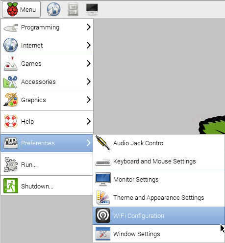 Haga clic en Menú -> Preferencias -> Configuración WiFi - un programa de ventana se abre llamado wpa_gui