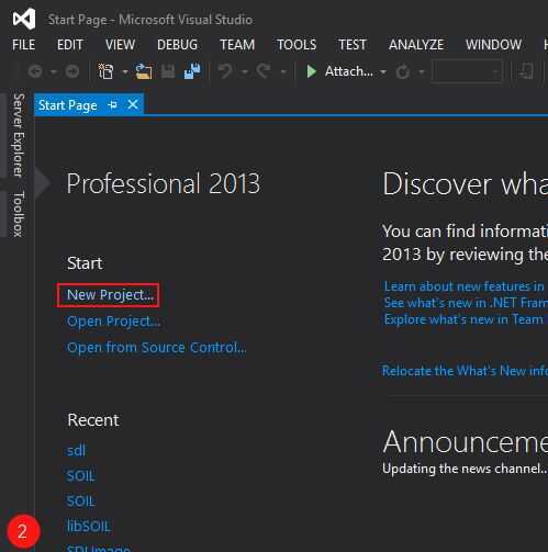 Para hacer esto, vaya a proyectos > VC * >doble, haga clic en SOIL.vcproj archivo, abrir con visual studio, ejecutar el código, y deben recibir un SDL.lib proyectos > VC * > Debug carpeta. Añadir esto a tu directorio lib en el archivo de descarga de suelo.