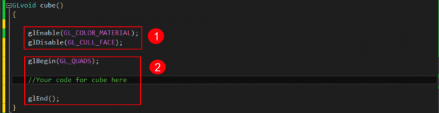 1) paso 1: Dile OpenGL lo que estás a punto de hacer. Use glBegin(GL_QUADS); para especificar el punto inicial de su construcción y glEnd(); para el punto final de la construcción.