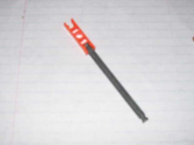 es un arma de simple KVG con desencadenar nuevos lo siento por pequeñas fotos usé mi teléfonoPaso 1: barril acaba de poner conectores rojo 11 en una barra rojaPaso 2: gatillo hacer este 2 conectores naranja sobre una barra blancaPaso 3: manejar! sin