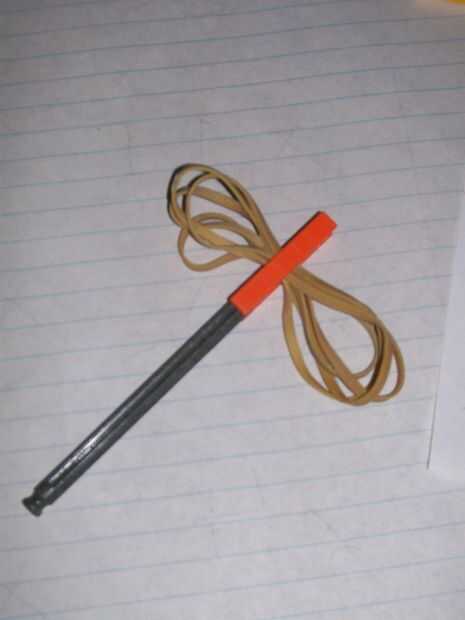 una pistola sencilla de unos trozos de KVG y una banda de caucho para disparar clips de papel.Paso 1: construir 2 palos amarillos y con solo 2 clips al lado de un conector y conectar los palitos en los conectores.Paso 2: acabado un conector final con