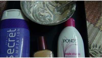 Paso 2: mezclar 5 cucharadas de talco y dos cucharaditas de la loción del cuerpo con media cucharadita de Fundación.