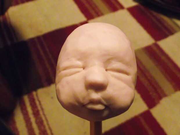 AÑADO UNA CAPA DELGADA DE ARCILLA Y SEGUIR CONSTRUYENDO EN LA ESCULTURA HASTA QUE TENGA UN BEBÉ CARITA MIRANDO DETRÁS DE MÍ.