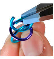 Tejer un anillo abierto a través del anillo equilibrado, mientras que también se saca a través del anillo que tiene en sus manos.
