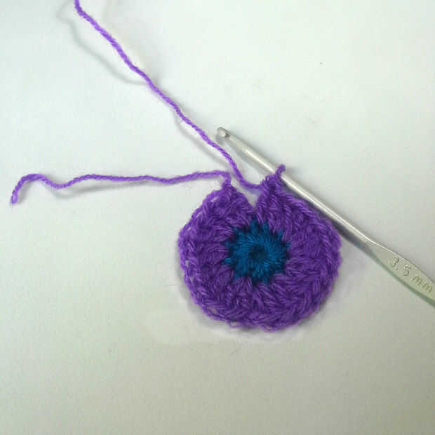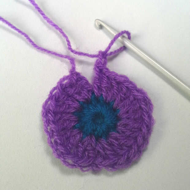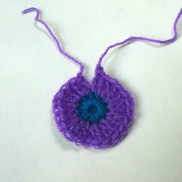 ES: Una vez nueve la vuelta a España, no cerrarla haciendo punto deslizado en el primer punto alto. Lo se debe hacer es cortar la hebra o estambre a unos 12 cm y pasar ésta por el último punto realizado. Levantadoras de cerrar.