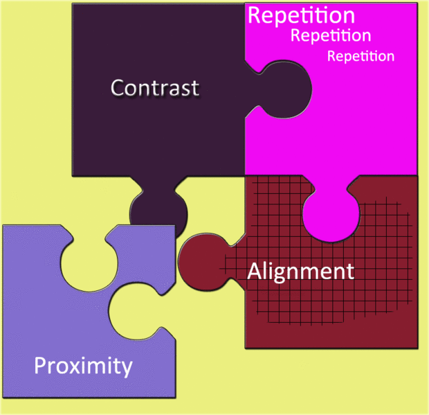 Todos estos principios de diseño, comúnmente contemplados como mierda o carpa, constituyen el gran diseño que vemos hoy. Playbills y carteles para películas y musicales utilizan estos principios. Diseñadores gráficos utilizan éstos para crear páginas de captura de los ojos, logos y más. Vea si usted puede encontrar todos estos principios en las fotos anteriores.