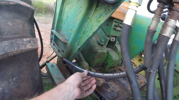 - Ahora quite la línea de retorno de la cargadora frontal y encontrar la mejor ruta para correr la manguera. No desea que la línea roce y moviendo muchas cosas como puede causar una falla prematura de la línea.
