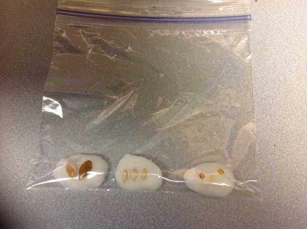 a continuación, coloque dos o tres semillas en cada bola de algodón. (Puede utilizar una variedad de semillas o una sola clase).