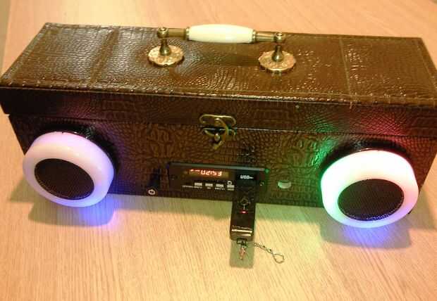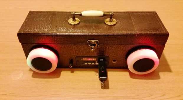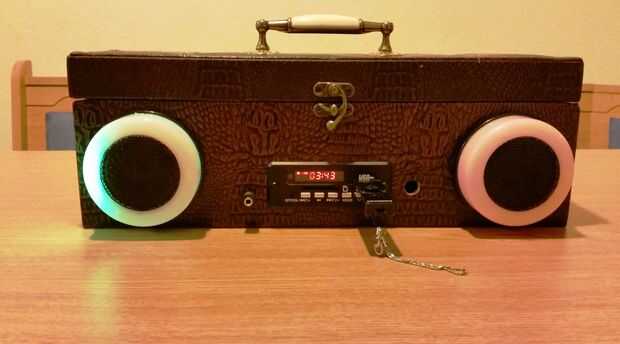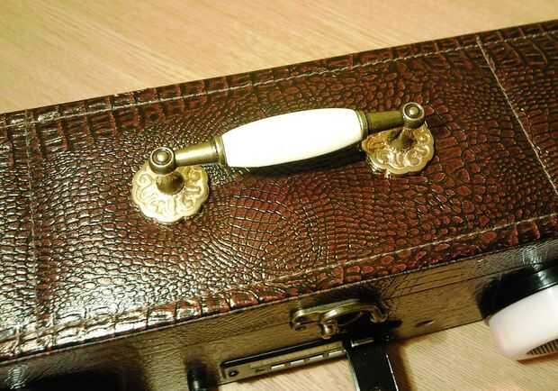 Para terminar el diseño que necesitaba poner algún tipo de soporte. Decidí usar la manija del estilo antiguo, que compré en una tienda local. Perforé dos agujeros para él en la tapa de la caja y fija con los tornillos de metal adjuntamos y algunos discos de metal. La única parte que falta ahora es el interruptor que he comprado en ebay y estaba esperando a llegar.