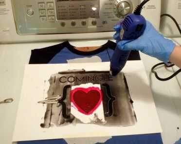 durante 20 segundos con una pistola de calor. Entonces comenzarás a cuidadosamente retire la plantilla. Una vez que su plantilla ha sido completamente eliminada, tomar su pistola y explosión su diseño otra vez durante unos 30-60 segundos.