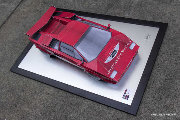 Verano de 2015, mientras mostrando mi colección de coches de papel en un coche local muestran se reunió una Junta de directores miembros de LeMay Car Museum que me presentaron la oportunidad de crear una obra con temática de coche único para la subasta de beneficio del Museo Concourse d ' Elegance. Acepté, decidimos utilizar el icónico Lamborghini Countach de inspiración y este proyecto fue el fruto de mis esfuerzos. El 30" largo modelo Printach es un homenaje a uno de los coches deportivos más emblemáticos en la historia automotriz y un museo que se dedica a preservar esta historia utilizando vitrinas extraordinarias. Este modelo fue comprado en la subasta y donó al museo donde está actualmente en exhibición.
