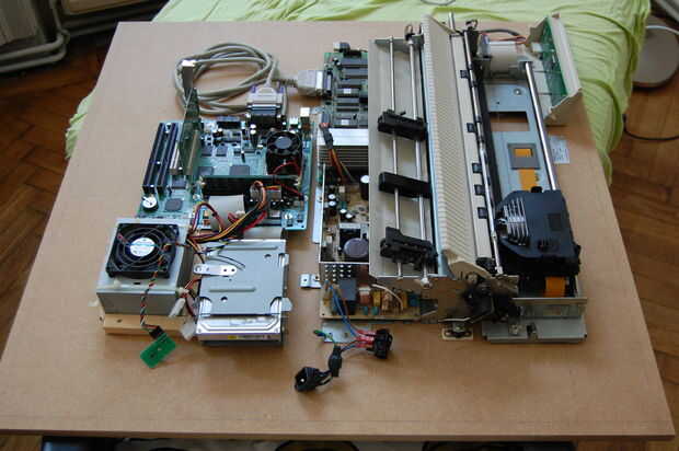 después de desmontar el hardware tiene montado en la parte inferior de la caja. interruptores y cables fueron agregados para permitir que todo ser puesto dentro de la caja y que apenas un interruptor y un enchufe de pared en el exterior.