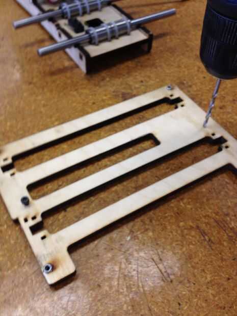 Antes de que vuelva a la cama tienes que perforar un agujero en el lado opuesto para el interruptor de x. Luego una vez hecho esto se vuelva a colocar la cama 180 grados de su posición original para que elimina las correas y rodamientos. Después de que usted puede poner la pieza de arriba de la cama y añadir la correa apoya.