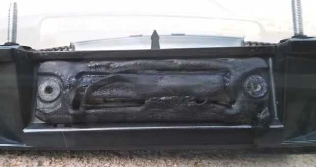 En la primera foto tenemos la situación antes - un desorden desagradable, pegajosa. Es más que una cubierta - algunas de esta pasta se extiende hacia abajo al lado de la carrera, todo lo de la soldadura en un blob disfuncional. (Verás). ANTELACIÓN - usar guantes desechables cuando se trabaja cerca de esta mugre.