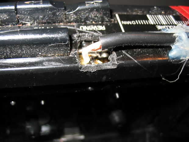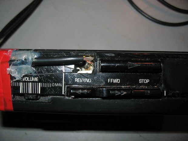 como se puede ver que tenía que arrancar el botón de rebobinado para hacer un orificio de acceso.