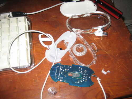 Levante el ratón aparte con un destornillador pequeño. Algunas de ellas se pegan, usé un cuchillo x-acto para cortar las costuras.