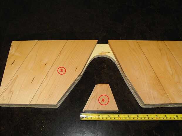 (4) corte forma de cuña de una pieza de tablero de 4" de ancho en la base.