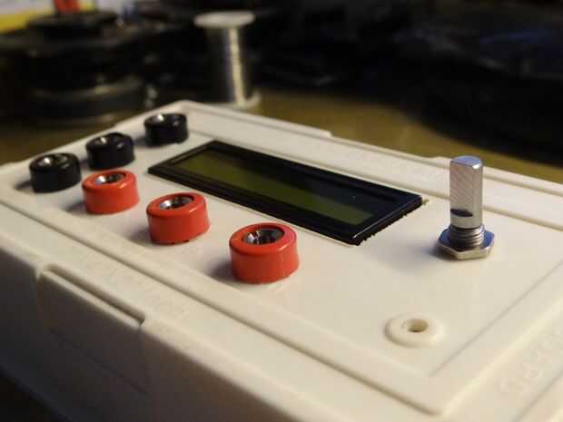 Taladré agujeros para atar los mensajes y DC jack entonces utiliza un cuchillo caliente para hacer recorte de 16 x 2 LCD.