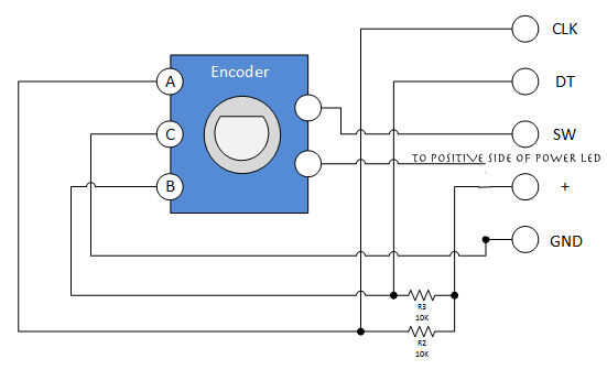 Nota: desoldar la pata a tierra de botón en el módulo de codificador rotatorio y que conecta al lado positivo del LED junto con los cables que salen de la PCB