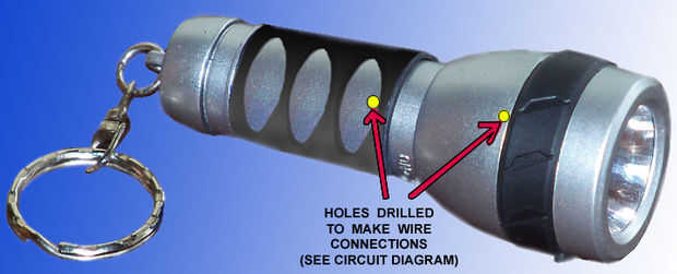 Una conexión de los cables conducen directamente al extremo negativo de la batería y el otro a la lámpara y el extremo positivo de la batería.