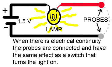 Tal como se indica, puede utilizar un timbre, o una radio y su sonido para hacer la prueba de continuidad eléctrica o, como en nuestro caso puede utilizarse una lámpara o una linterna modificada.