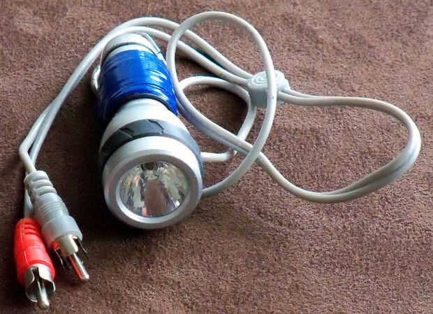 Usé un viejo cable de audio para que los enchufes RCA podrían funcionar como sondas sólidas para tocar los puntos de prueba o extremos de los cables.