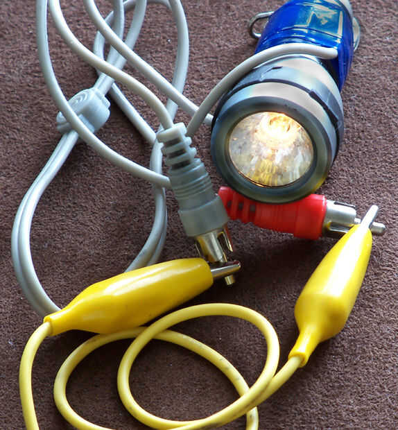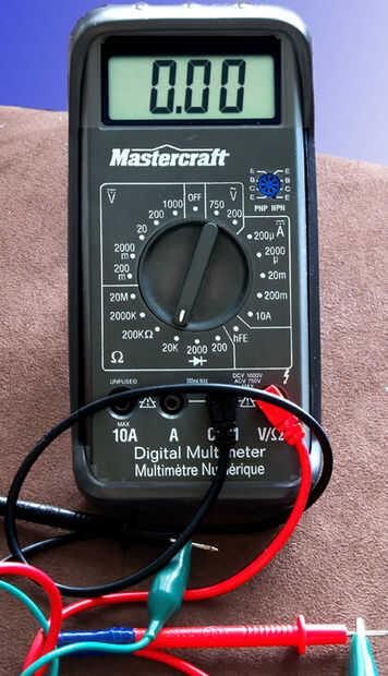 La imagen del multímetro muestra una lectura de ohms 0.00 es el equivalente de este "probador de linterna" teniendo su luz viene en.