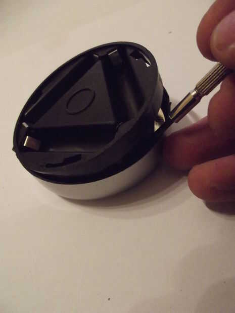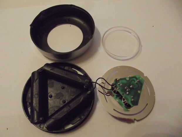 Una vez que las baterías se quitan puede exprimir el destornillador de cabeza plana entre el compartimento de la batería y la cubierta exterior. Con esta lámpara la carcasa estallar fácilmente para exponer la placa de circuito con LEDs, así como los cables de conexión de compartimento de la batería.