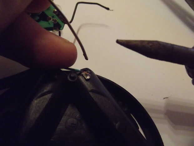 El primer alambre soldar en el terminal que tomamos el cable original de la batería. En esta etapa es posible que la necesidad de una mano extra. Me pareció útil para poner las pinzas del cable para pesar abajo y manténgala en posición mientras que soldado.