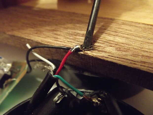 Cuando se haya enfriado la soldadura puede envolver un poco de cinta aislante en el cable expuesto y montar la luz vivienda otra vez.