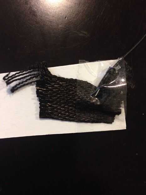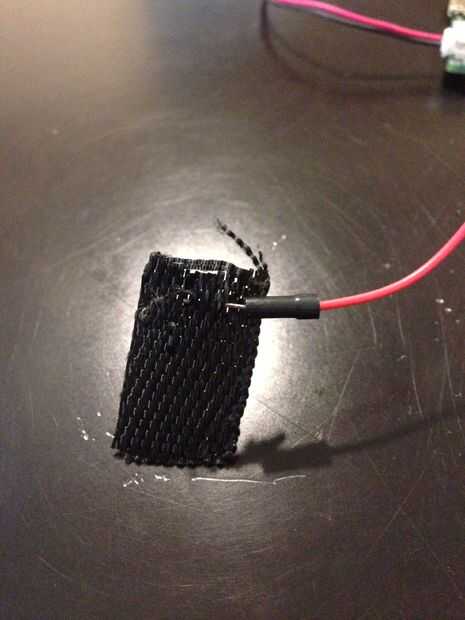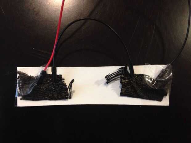 Cortar dos trozos de cinta de calor de carbono (para usar como contactos) y luego insertar un puente de alambre en su micro-controlador de 3, 3V y un análogo de pin.