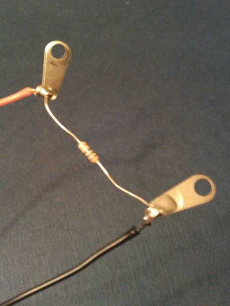 Conectar el resistor de 10 ohmios entre los conectores de su vinculante Post placa tornillo tipo chasis montaje 1 negro 1 rojo.