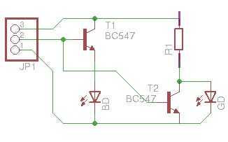 El Vcc outputted puede ser conectado directamente a un led o múltiple con un transistor. Un RGB led también podría ser utilizado, junto con un no de la puerta para un verde podía ser demostrado si hay No corto y un rojo si hay o viceversa vica.