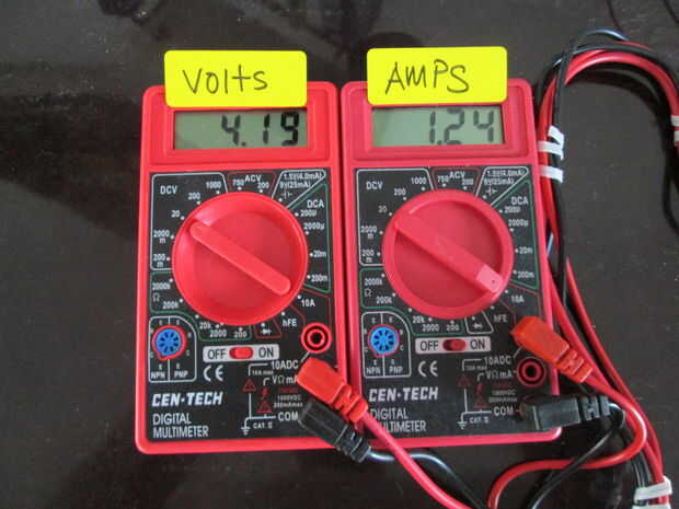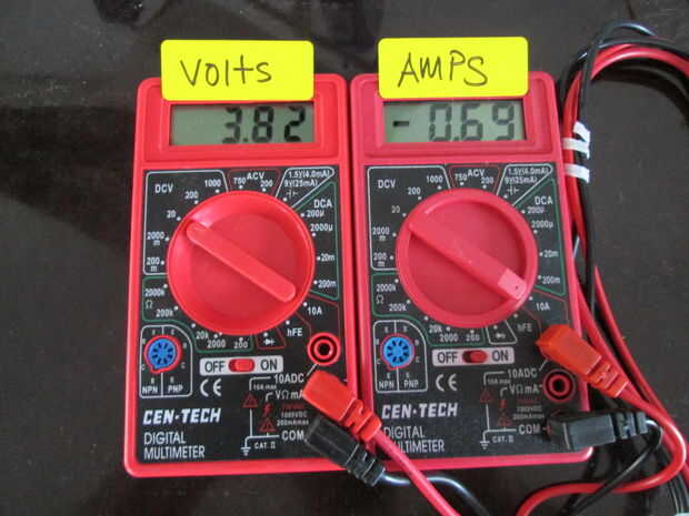 En la imagen superior se está cargando la batería y su índice de carga en amperios se muestra junto a su voltaje. La siguiente fotografía muestra la batería se descargue y se puede ver la tasa de descarga en amperios con el signo negativo en el metro junto con la tensión. Ya que están tratando de encontrar las células malas que tienes que hacer una célula en un momento. El interruptor se utiliza para cambiar de carga a descarga es importante mantener un ojo en la temperatura de la célula, como se mencionó anteriormente. Una vez que la batería es de hasta 4,2 voltios que te recomiendo 5 minutos descarga ciclo para ver si la batería no cae demasiado en tensión. Me encontré con todas las pilas buena que había mantenido al menos 3,9 voltios o superior, con una carga de 720 mah para 5 minutos. Recomendada para una batería de iones de litio estándar de 3,7 voltios para cargar hasta 4,2 voltios máximo y no se descargue más allá de 3,0 voltios. Si cambia a la fuente de voltaje / amperaje y la resistencia de carga a la batería el cambio que puede hacer esta prueba en prácticamente cualquier batería recargable. Es importante ver hasta las especificaciones para el tipo de batería y ajustarlo en consecuencia.