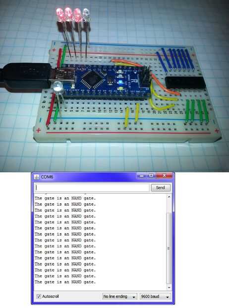 Ahora, si usted no cuenta por ahora, este circuito y el código sólo prueba una de las cuatro puertas en el ICs. Además uno o cambiar a este proyecto que podría realizarse es para poner a prueba simultáneamente todas las cuatro puertas en el chip. Indican los resultados de cada puerta independiente (tipo/pass/fail) y si una puerta no la prueba, o indica una función de lógica diferente del resto, indicar el tipo de IC por mayoría de votos (es decir, si el probador encuentra tres puertas y válidos, pero la cuarta puerta indica algo "o", el chip se identifican como una puerta "Y" IC con una puerta mala). Hay muchas variaciones y adiciones que se podrían hacer a este proyecto, y me encantaría ver algunos de los suyos; incluso si lo hiciste como lo hice.