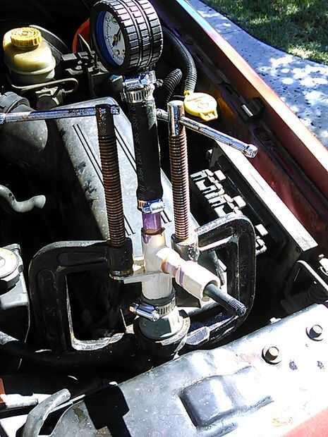 foto es un probador de presión del radiador comercial. Son relativamente costosos para el bricolaje hogar mecánico. Pero, hay veces cuando sería muy útil tener un polímetro de presión del radiador para encontrar fugas hacia refrigerante pérdida y pos