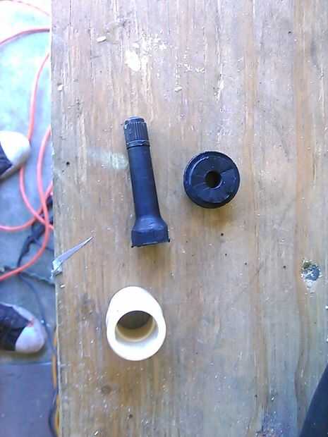 Corte la parte inferior del vástago en el labio que en la parte inferior de la válvula de metal dentro. Usé mi sierra y sólo funcionó alrededor de la base un poco a la vez mantener un buen ajuste apretado en el acoplador. Fuerza a través del acoplador para que el tapado final viene por el otro lado.