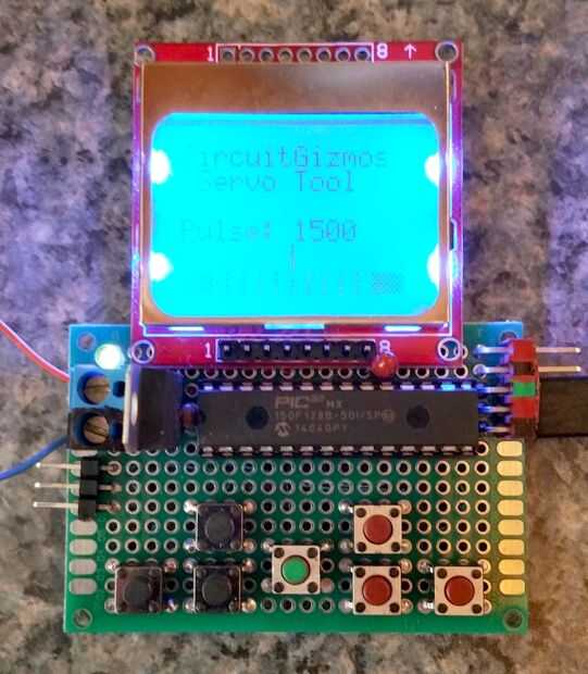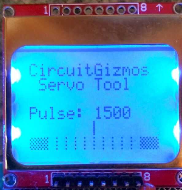 Hay una indicación gráfica de la posición del servo en la parte inferior de la pantalla. Hay 100 microsegundos tic marcas y encima que un puntero que se mueve hacia la derecha como el ancho de pulso disminuye y a la izquierda a medida que aumenta.