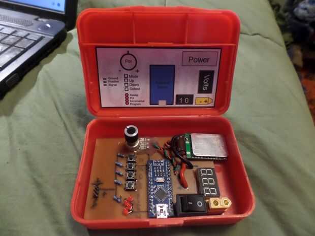 Tengo un probador de servos mal funcionamiento durante mucho tiempo. Chalanged me para reconstruir a trabajar otra vez aplicando mini unidad de controlador Arduino. El viejo probador servo tiene un chip programable no instalado en tablero compacto de