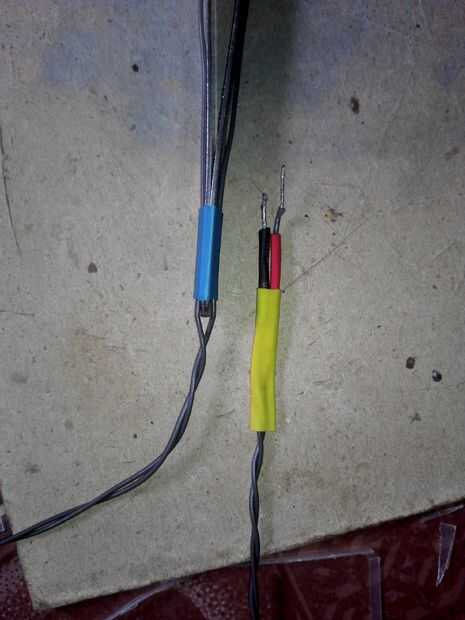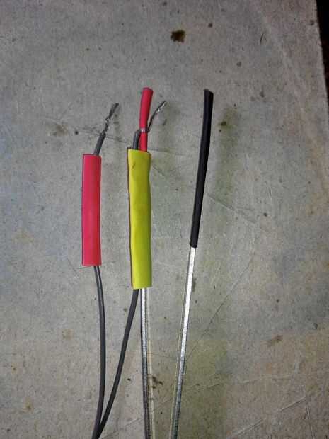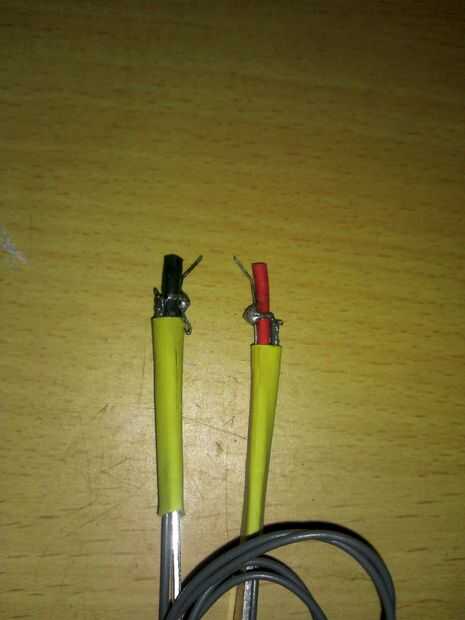 Tomar una pinza, colocar un tubo del encogimiento del calor pequeñas para cubrir la punta. El tubo debe lo suficiente para cubrir todo punta. El tubo del encogimiento del calor solean clavijas de prueba con pinzas; también apoyo la clavija de prueba. Necesita un negro y un tubo rojo para identificar la polaridad del componente, así como alambre. La longitud de los cables debe ser cómoda para trabajar con (mina son 60 cm)