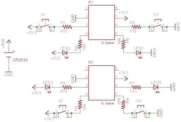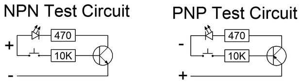 El propósito de este circuito es para probar transistores de NPN y PNP y a identificar sus diseños de polos, es decir BCE, EBC. Me encuentro pruebas mucho de determinar su tipo y esquema de los terminales y así encontrar que construir el circuito de prueba en un protoboard se ha convertido en una molestia por lo que yo quería un circuito fácil que sería más permanente y que me permitiera probar transistores los transistores.