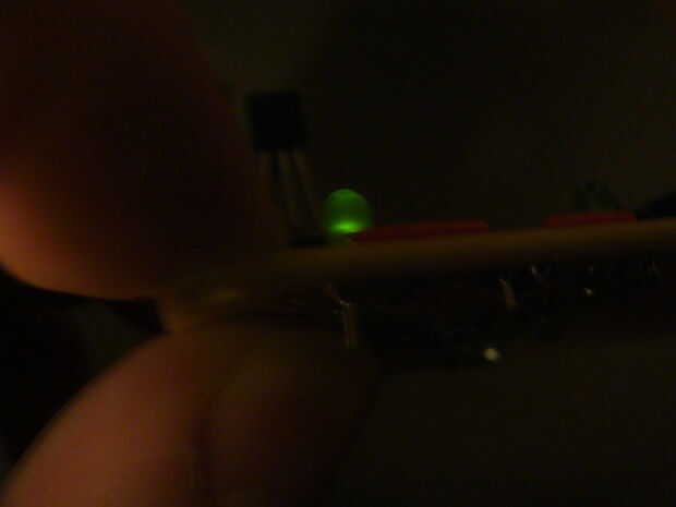 - Es el LED apagado? Presione el botón y observar el estado del LED. Si el LED se enciende han descubierto tres cosas acerca de este transistor desconocido. Uno es del tipo NPN. Dos if tiene una orientación de EBC y tres funciona.