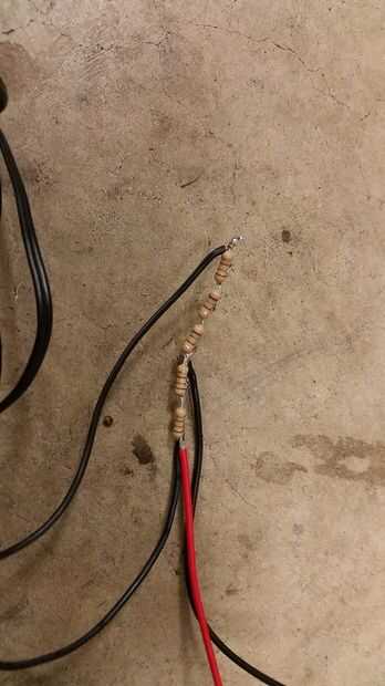 Mientras que el reloj puede haber derecho de 5v, no quería freír, usé un paquete de 5 resistencias de 150 Ohm para hacer un divisor de tensión. Divisores del voltaje son increíblemente simples y debido a la baja corriente dibuja del reloj (es decir, venir, una batería AA lo alimenta durante años), probablemente podría utilizar cualquier resistencias de tamaño de 10 Ohm a 100kOhm,
