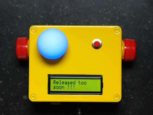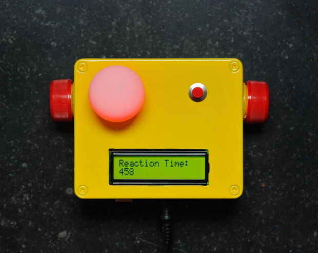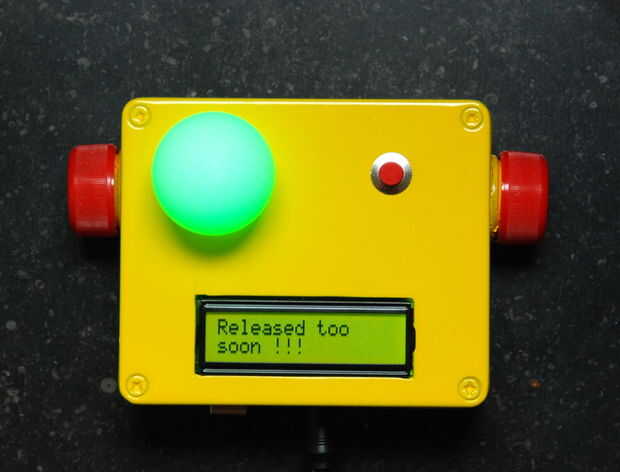 La prueba se inicia tan pronto como usted mantenga pulsado el botón de empuje. Cuando aparece una luz roja, usted debe dejar ir apagado el botón tan pronto como sea posible. Su tiempo de reacción aparecerá en la pantalla.