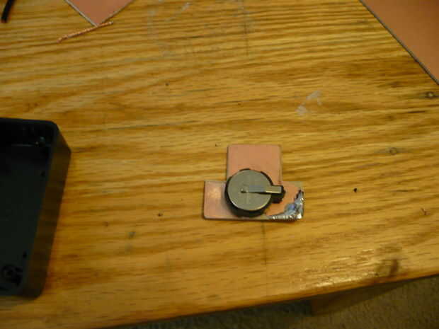 Esta es la parte fácil.  Soldar el soporte de la batería en la PCB por el lado positivo.
