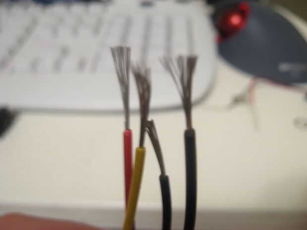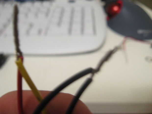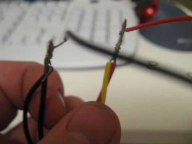 Si tienes los cuatro cables, giro negro con negro, rojo con amarillo (es más fácil de esa manera) no retuerza los cables si tiene sólo dos. cualquiera de los extremos podría positivos o negativos. Puedes soldarlos juntos o dejar torcido.
